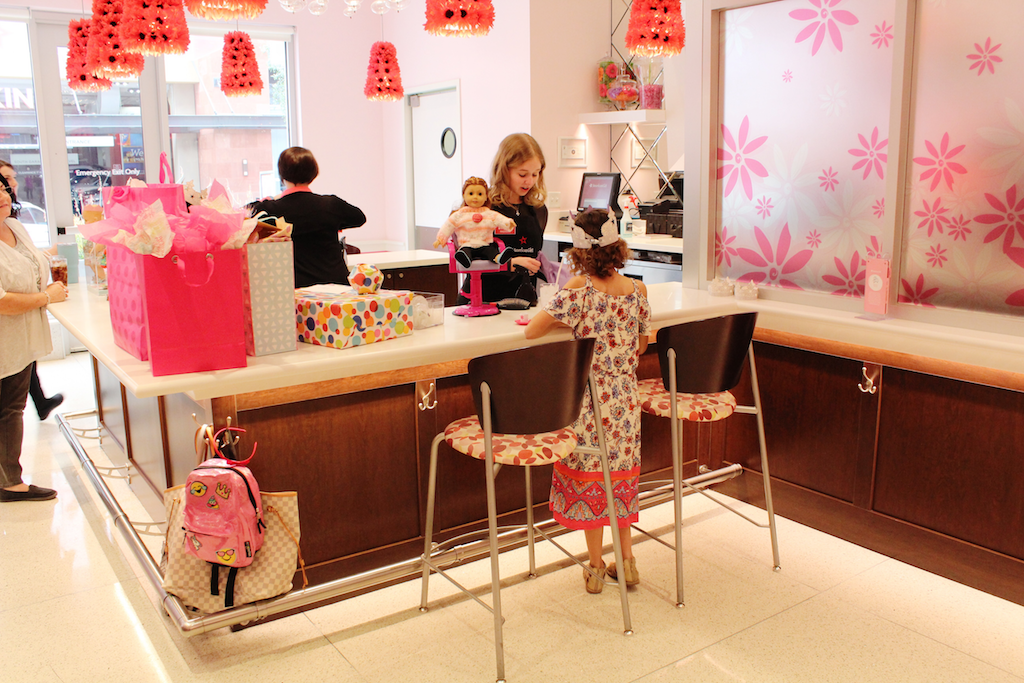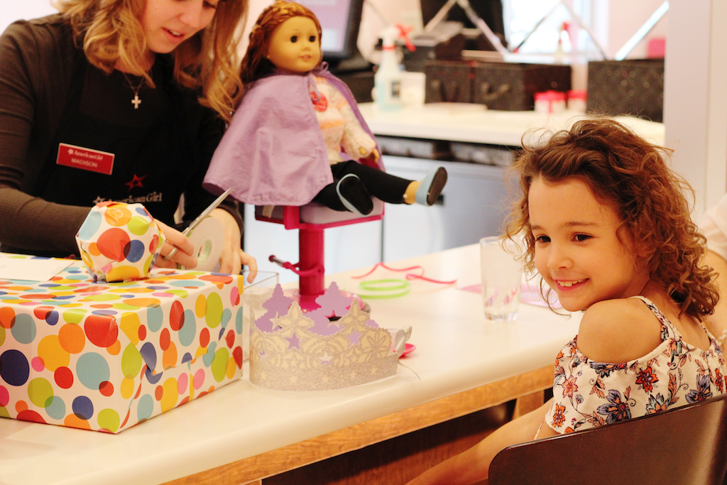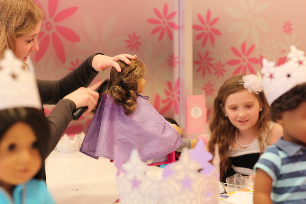 Our experience included: A hairstyle for each of the girl’s dolls. I really love the fact you don’t have to own an American doll too. They will style any doll with hair, you just have to sign a quick waiver. They can also loan one of their dolls for a guest too!
