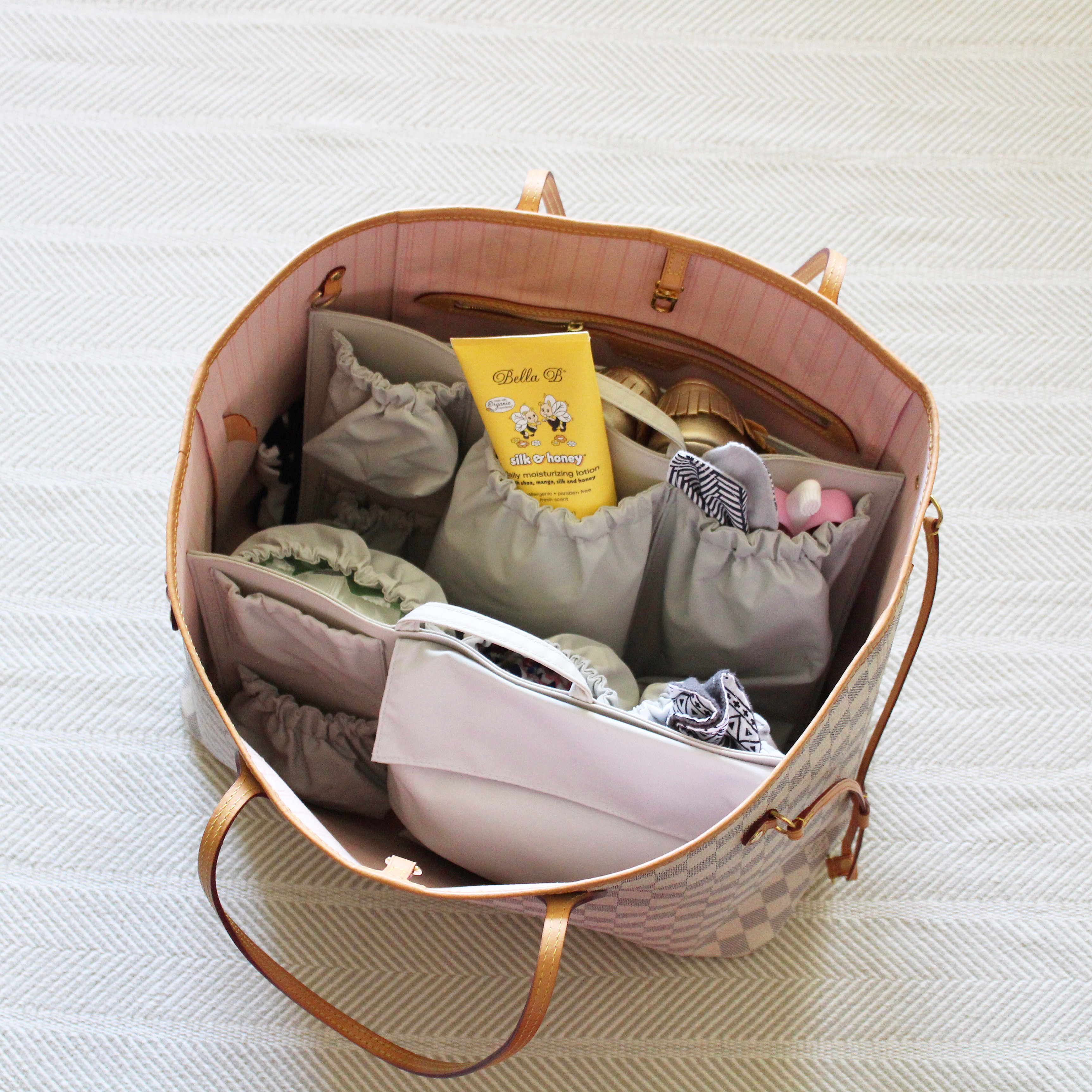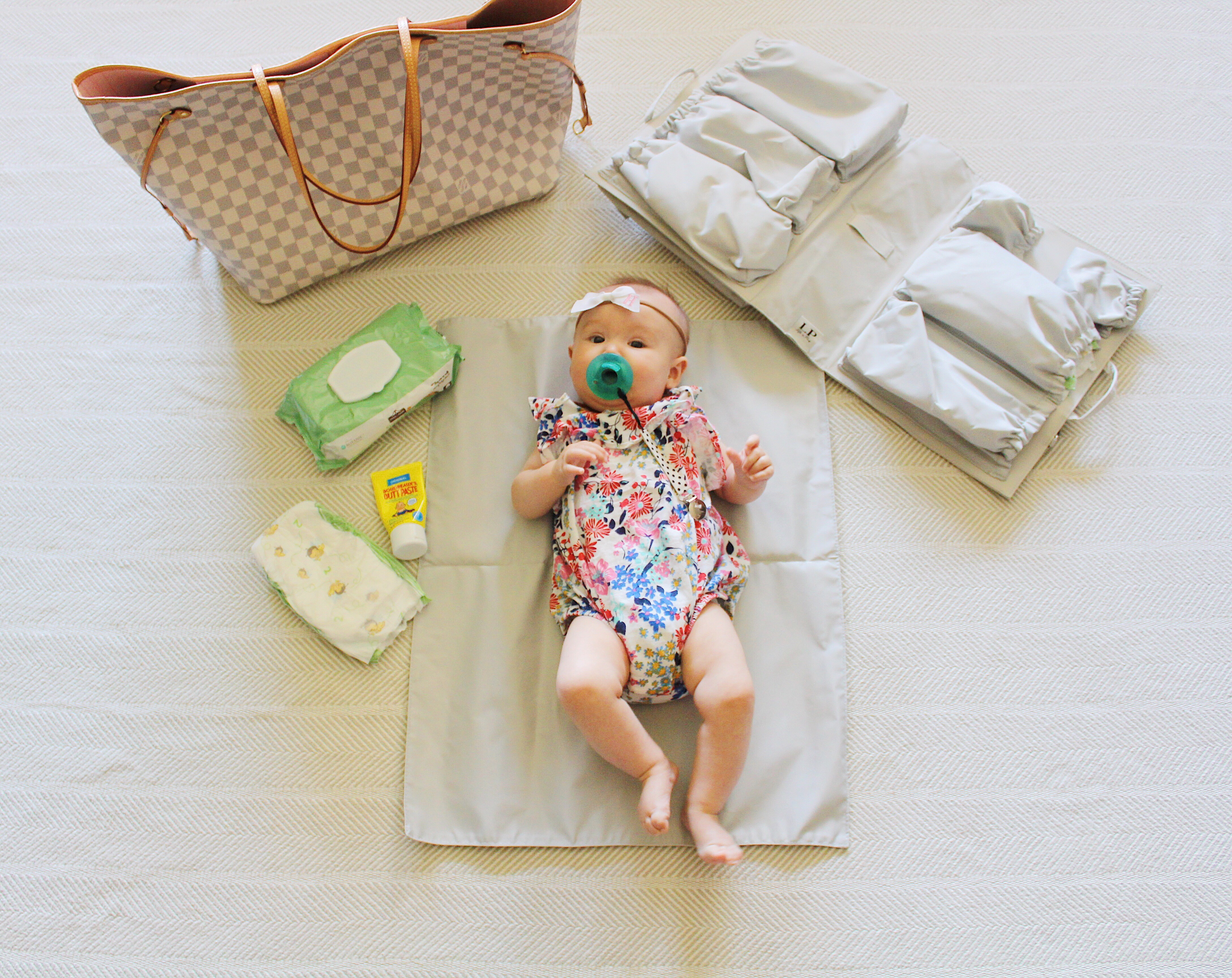 First of all, I love that there is a genius company out there that designed a beautiful insert that fits perfectly in my handbag, yep, my designer handbag! I love you Totesavvy for everything that you are! So this insert has a bunch of compartments and my favorite part is the diaper changing mat because it is nice and big, perfect for babies that like to squirm and roll like mine.